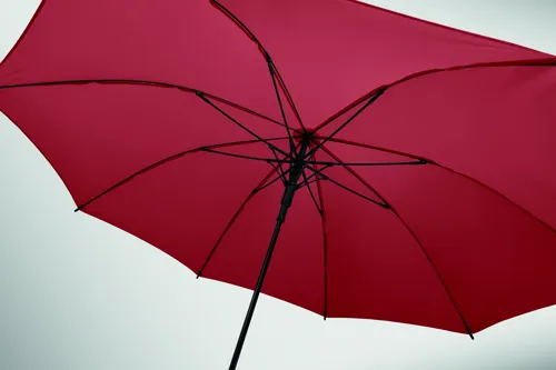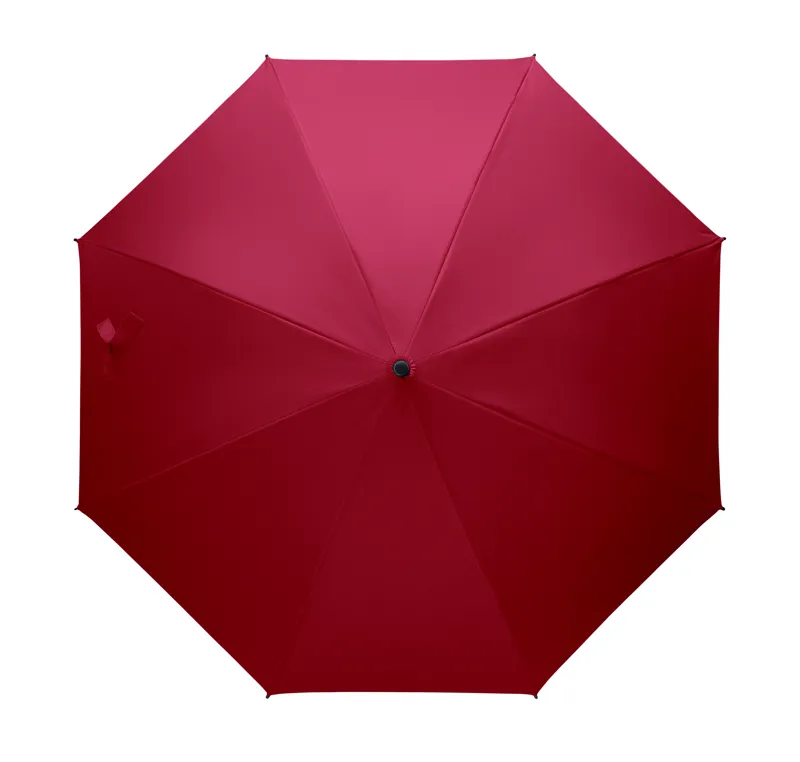 23 colos, egyenes, automatikusan nyíló, szélálló esernyő, teljes üvegszálas vázzal és 190T nyersselyem pongee anyagból készült panelekkel. Műanyag cikkelyzáró elemek és csúcs. Gumírozott, PP műanyag hajlított markolat. Kézi záródás.