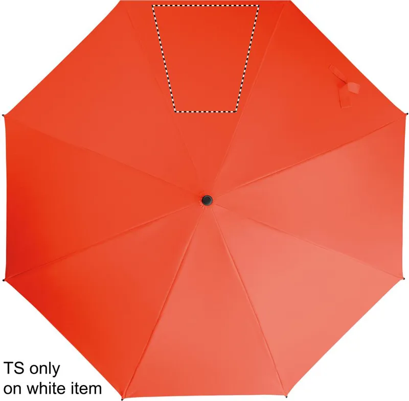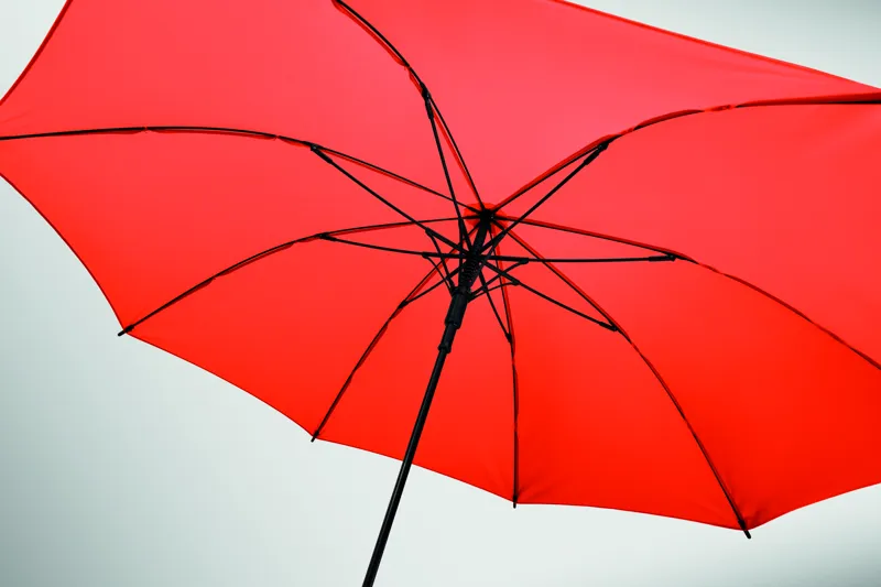 23 colos, egyenes, automatikusan nyíló, szélálló esernyő, teljes üvegszálas vázzal és 190T nyersselyem pongee anyagból készült panelekkel. Műanyag cikkelyzáró elemek és csúcs. Gumírozott, PP műanyag hajlított markolat. Kézi záródás.