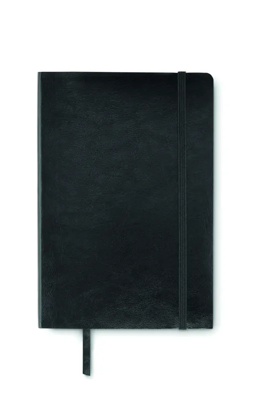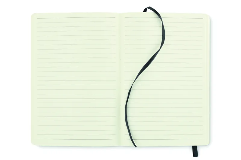 A5 jegyzetfüzet puha, újrahasznosított PU borítóval (81% újrahasznosított poliészter és 19% PU). Cérnafűzött. 160 vonalas, újrahasznosított papír oldal (80 lap). Illeszkedő színű elasztikus zárópánt és könyvjelző szalag. Irattartó zseb a hátsó borító belső oldalán. FSC®-certified | FSC MIX CREDIT, P7.1, FSC-C213206