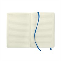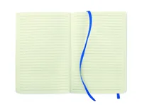 A5 jegyzetfüzet puha, újrahasznosított PU borítóval (81% újrahasznosított poliészter és 19% PU). Cérnafűzött. 160 vonalas, újrahasznosított papír oldal (80 lap). Illeszkedő színű elasztikus zárópánt és könyvjelző szalag. Irattartó zseb a hátsó borító belső oldalán. FSC®-certified | FSC MIX CREDIT, P7.1, FSC-C213206