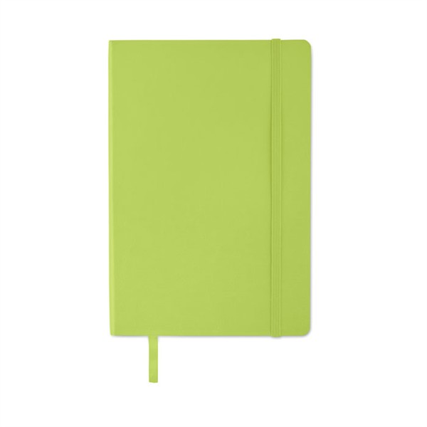 A5 jegyzetfüzet puha, újrahasznosított PU borítóval (81% újrahasznosított poliészter és 19% PU). Cérnafűzött. 160 vonalas, újrahasznosított papír oldal (80 lap). Illeszkedő színű elasztikus zárópánt és könyvjelző szalag. Irattartó zseb a hátsó borító belső oldalán. FSC®-certified | FSC MIX CREDIT, P7.1, FSC-C213206