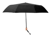 Összecsukható, szélálló 8 paneles esernyő színben megegyező tokkal. Fém vázzal, üvegszálas merevítőkkel és fa fogantyúval. 190T RPET pongee anyagból. Megkülönböztető RPET címkével.