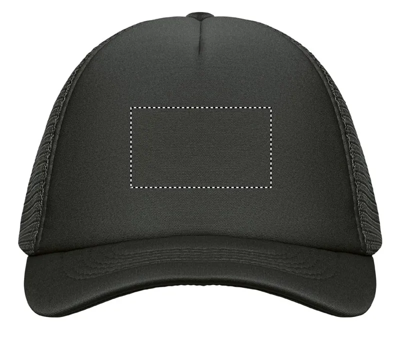 5 paneles poliészter 140-150 gr/m2 kamionos sapka. Állítható műanyag zárórész. Fehér elülső panel és színes napellenző jersey poliészter anyagból. A többi panel hálós anyagból. Méret: 7 1/4.