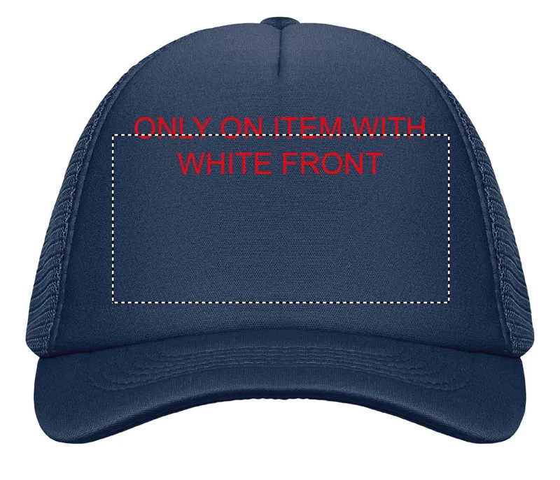 5 paneles poliészter 140-150 gr/m2 kamionos sapka. Állítható műanyag zárórész. Fehér elülső panel és színes napellenző jersey poliészter anyagból. A többi panel hálós anyagból. Méret: 7 1/4.