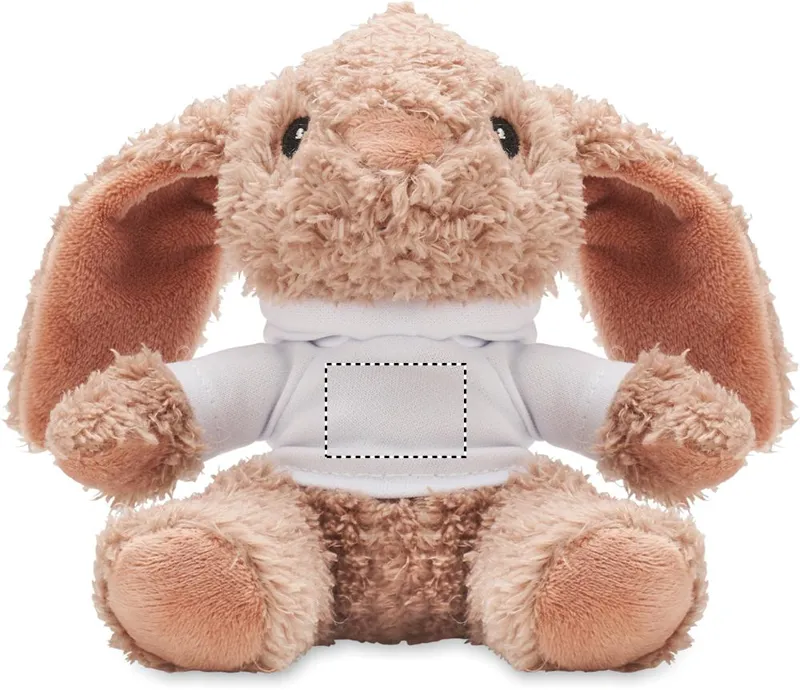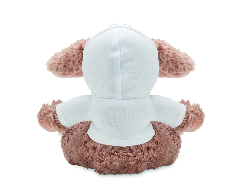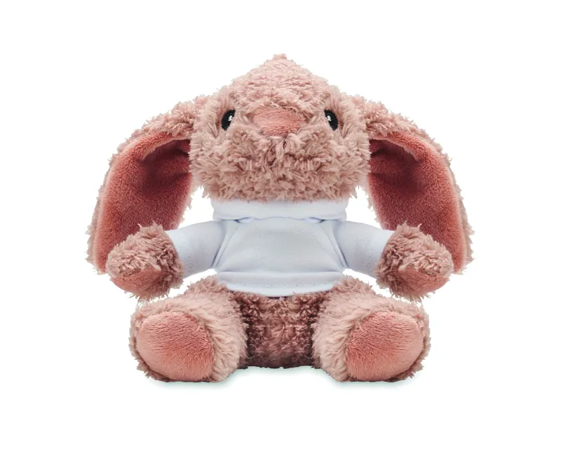 Kapucnis pulóvert viselő plüss nyuszi. Ideális szublimációs nyomtatáshoz.