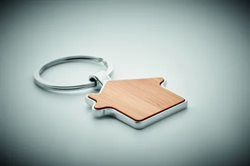 Ház alakú cink ötvözet kulcstartó bambusz előlappal. A bambusz természetes anyag, termékenként szín- és méretbeli eltérések jelentkezhetnek, ami befolyásolhatja a dekoráció végső eredményét.