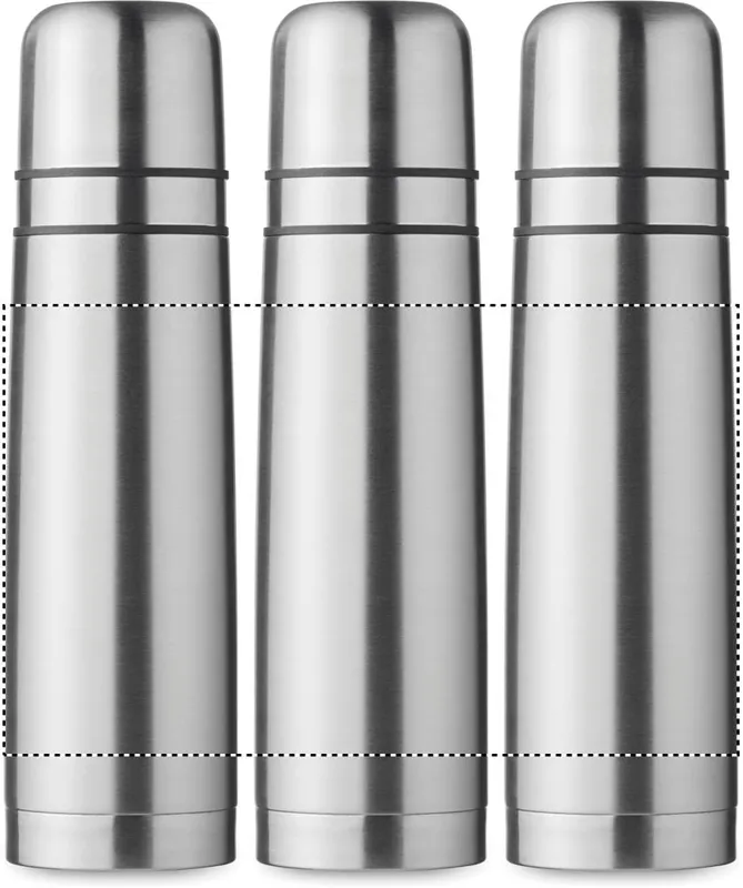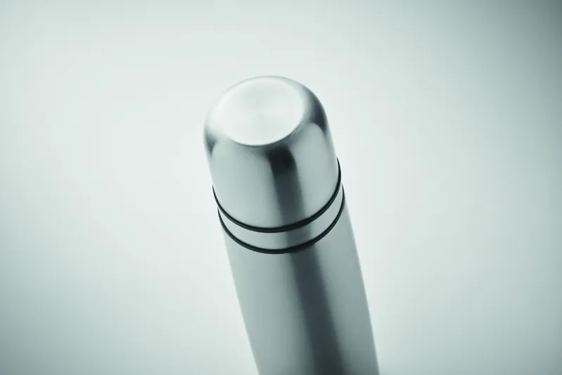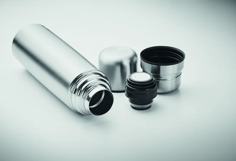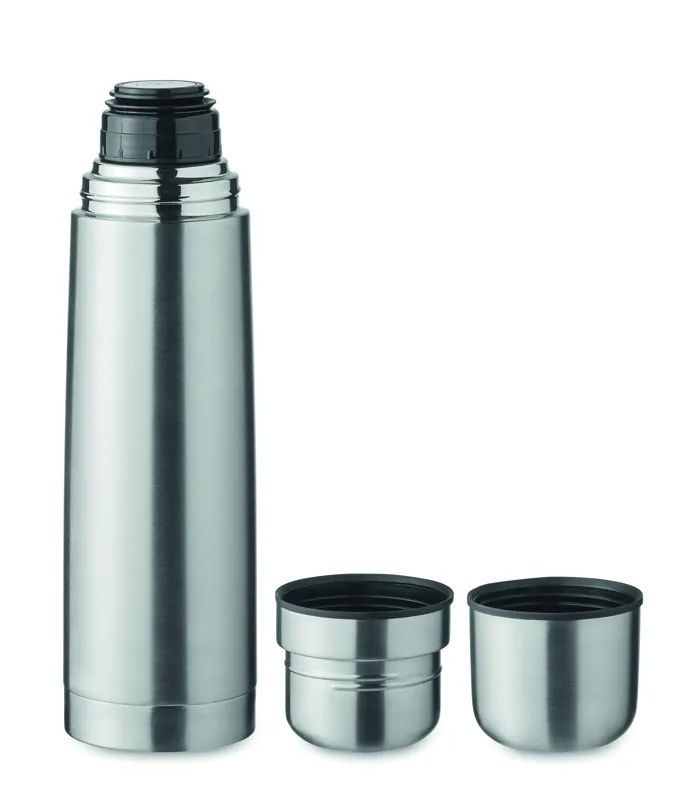 Duplafalú, újrahasznosított rozsdamentes acélból (90% újrahasznosított rozsdamentes és 10% rozsdamentes acél) készült termoszpalack, a fedélben 2, a belső oldalán PP anyagú pohárral. Űrtartalom: palack 750 ml, külső pohár 150 ml, belső pohár 125ml.