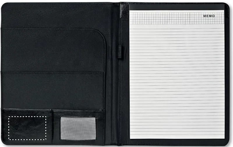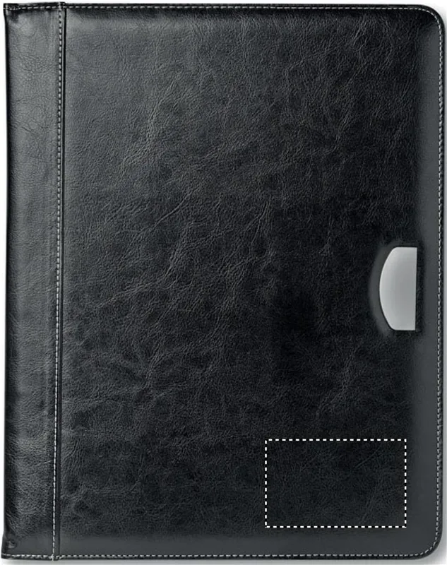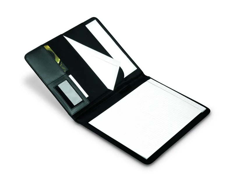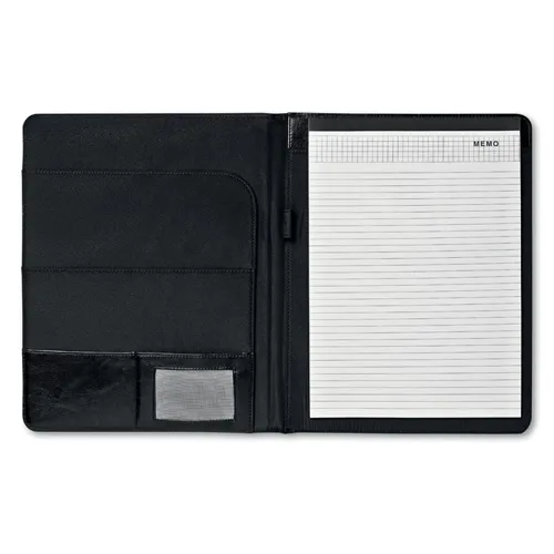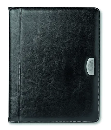 A4-es PU irattáska emblémázáshoz ideális kis fém lappal. 20 oldalas jegyzetfüzetet tartalmaz.