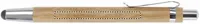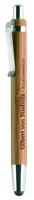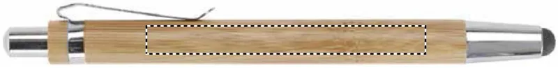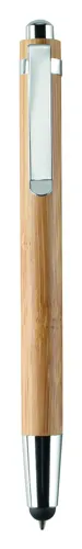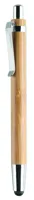 Nyomógombos bambusz golyóstoll fém csíptetővel, érintőheggyel. Kéken író betéttel. A bambusz természetes anyag, színében, mintázatában és méretében esetenként eltérő lehet.