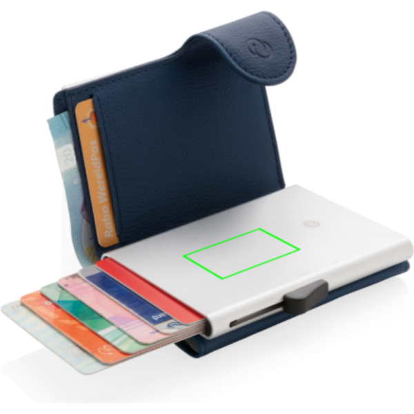 Tárolja biztonságosan kártyáit ebben a szolid, alumínium kártyatartóban ami egyúttal az elektronikus adatlopás ellen is védelmet biztosít. A kártya nem hajlik, nem törik. Akár 7 sima vagy 5 dombornyomott kártya tárolására alkalmas. Tárca részében aprópénz tárolható.