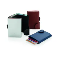 Tárolja biztonságosan kártyáit ebben a szolid, alumínium kártyatartóban ami egyúttal az elektronikus adatlopás ellen is védelmet biztosít. A kártya nem hajlik, nem törik. Akár 7 sima vagy 5 dombornyomott kártya tárolására alkalmas. Tárca részében aprópénz tárolható.