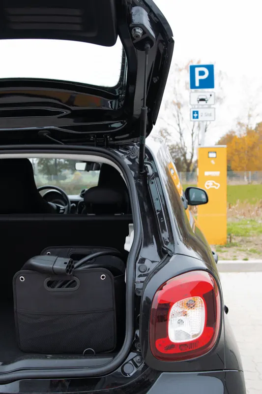 CABLE HOME csomagtér táska autóhoz, összecsukható: alsó merevítéssel, hálós zseb az oldalán, 2 integrált fogantyú, tépőzárral az alján a biztonságos tartásért a csomagtérben és 4 fém fűzőlyukkal a rögzítéshez , ideális tárolóhely az elektromos autók töltőkábeléhez – használaton kívül a rugalmas övnek köszönhetően összecsukható, így helytakarékos