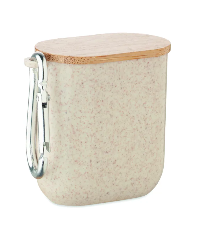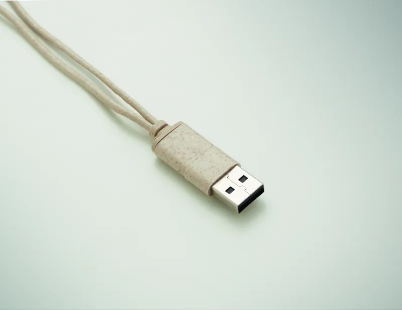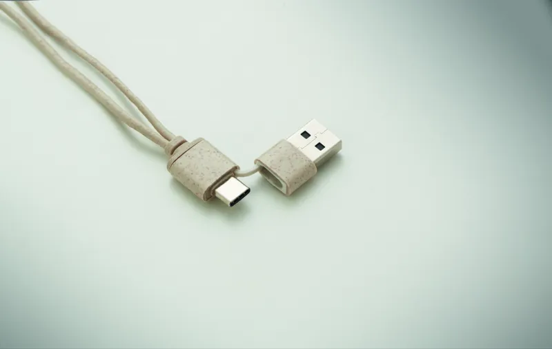 Kábelkészlet búzaszalma/ABS tokban, bambusz fedéllel, karabinerrel. A fedél vízszintes helyzetben telefonállványként használható. Bemenet 2 az 1-ben USB-C/A, kimenet C-típusú és 2 az 1-ben csatlakozó.