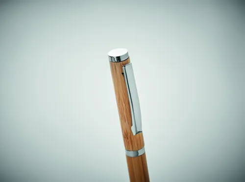 Golyóstoll bambusz tolltesttel és rozsdamentes acél szerelvényekkel. Kéken író zselés betéttel. Jegyzeteljen a fontos megbeszéléseken ezzel a zselés tollal. A fenntartható és természetes bambusz alapanyag modern és stílusos megjelenést kölcsönöz ennek az írószernek. A bambusz természetes anyag, színében, mintázatában és méretében esetenként eltérő lehet. FSC®-certified | FSC 100%, N10, FSC-C213206