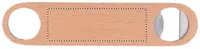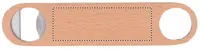 Rozsdamentes acél üvegnyitó fa felülettel.