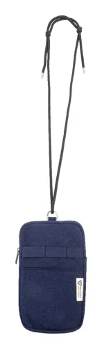 Újrahasznosított vászonból készült, mobiltartós oldaltáska cipzáras fő rekesszel, elülső zsebbel és állítható RPET poliészter nyakpánttal. 70% újrahasznosított pamut és 30% RPET poliészter. Megkülönböztető újrahasznosított pamut címkével.