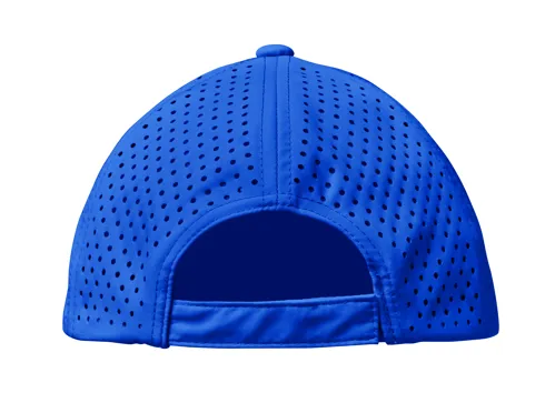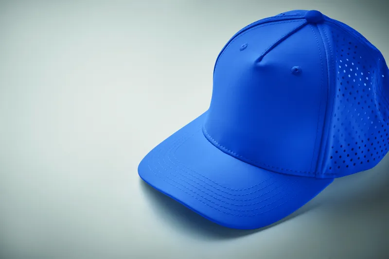 5 paneles, poliészter sportsapka állítható tépőzáras záródással, lézervágott lyukakkal, 2 színazonos, hímzett szellőzőlyukkal. Gyorsan száradó, izzadság- és vízlepergető. 130 g/m².