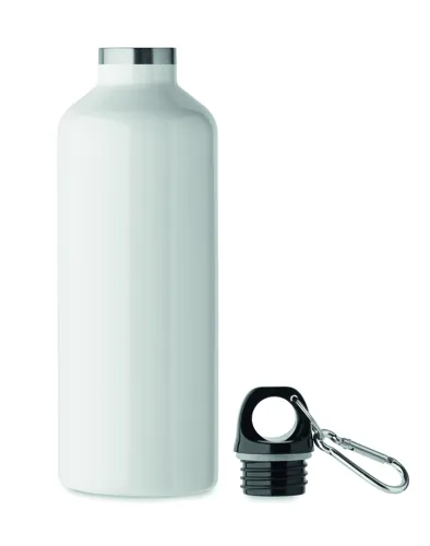 Duplafalú termoszpalack újrahasznosított rozsdamentes acélból (90% újrahasznosított- és 10% rozsdamentes acél), karabineres fogantyúval ellátott fedéllel. A karabiner hegymászásra, védőfelszerelés céljára nem alkalmas. Szivárgásmentes. Űrtartalom: 500 ml.