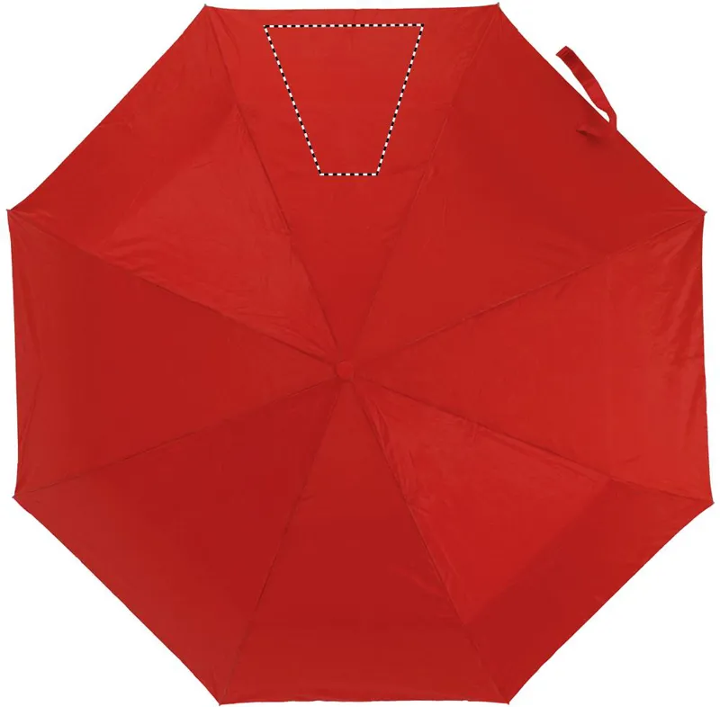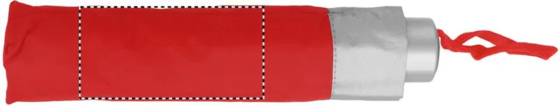 21 colos, manuális, 3 szakaszos összecsukható esernyő 190T poliészter anyagból. Galvanizált fém nyél és csúcsok. Fekete bevonatú fém váz. Színes műanyag panelek belül ezüst betéttel. Színes műanyag markolat ezüst díszítéssel és fekete csuklópánttal. Hozzáillő tokban, ezüst díszítéssel.