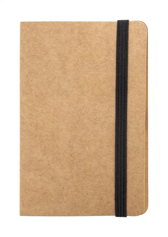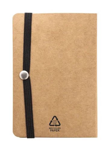 Kraft papír kártyatartó újrahasznosított papír öntapadós jegyzetlapokkal és rugalmas zárópánttal. 25 sárga öntapadós jegyzetlapot és 125 oldaljelölőt (5 színben) tartalmaz.