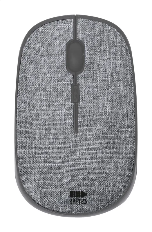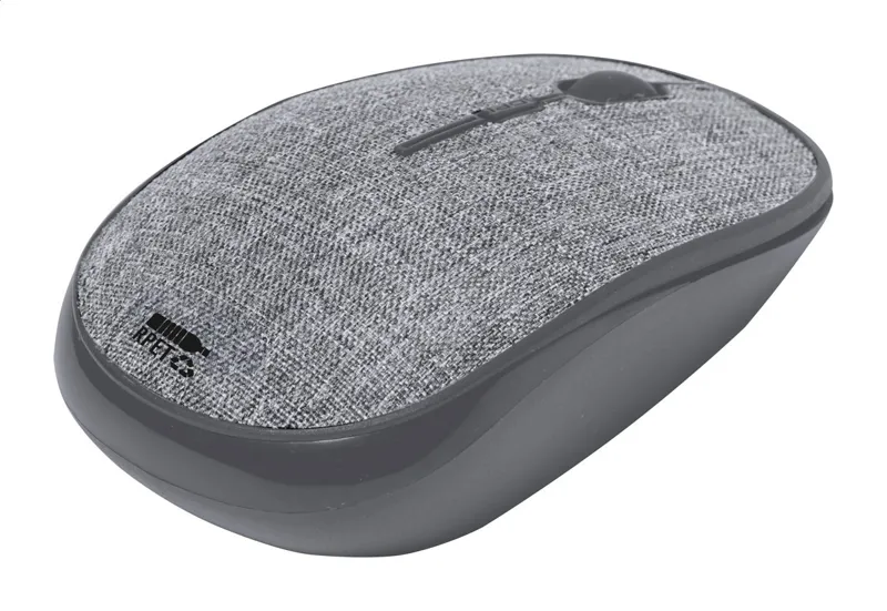 Vezeték nélküli optikai egér RPET poliészter borítással. 1 db AA elemmel működik, elem nélkül szállítjuk.