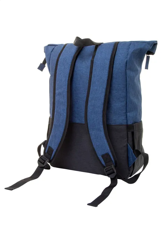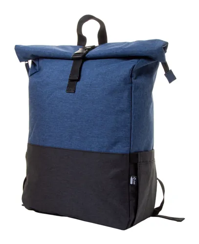 Két tónusú, RPET hátizsák csatos záródással, cipzáras fő rekesszel, párnázott laptop (15") és tablet (10") rekesszel, oldalzsebekkel, párnázott hát- és vállpánttal. 300D RPET poliészter, megkülönböztető RPET címkével.