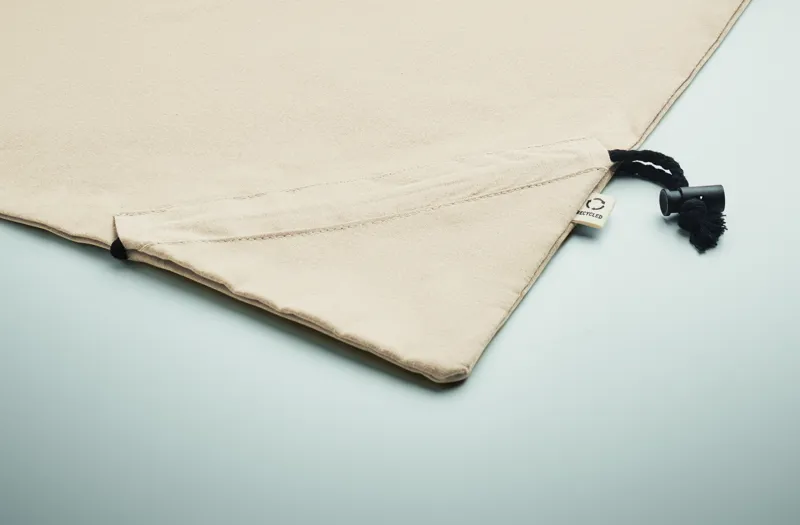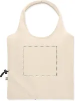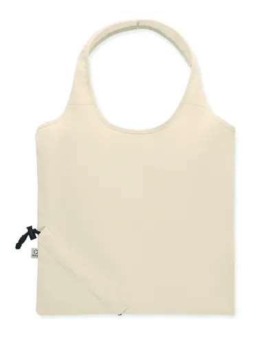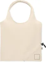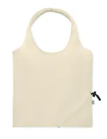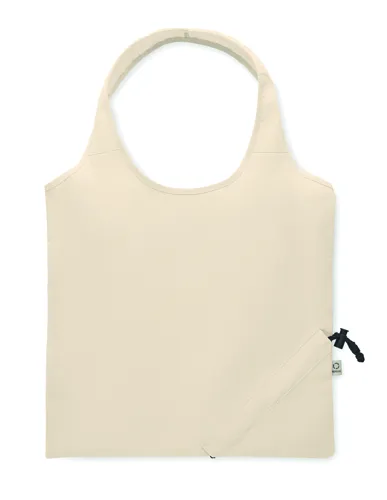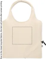 Fogyasztás előtti újrahasznosított pamut, összehajtható bevásárlótáska (70% újrahasznosított pamut és 30% RPET). 140 g/m². Ez az anyag nyomtatás után zsugorodhat.