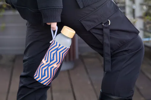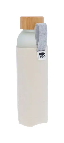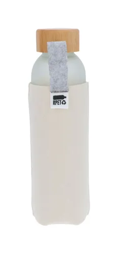 Üveg kulacs bambusz kupakkal, egyedi gyártású, full colour nyomtatott RPET filc tokban és megkülönböztető RPET címkével. Az ár tartalmazza a szublimációs nyomtatást. 500 ml. Minimális rendelési mennyiség: 50 db. Nem alkalmas szénsavas italok tárolására.