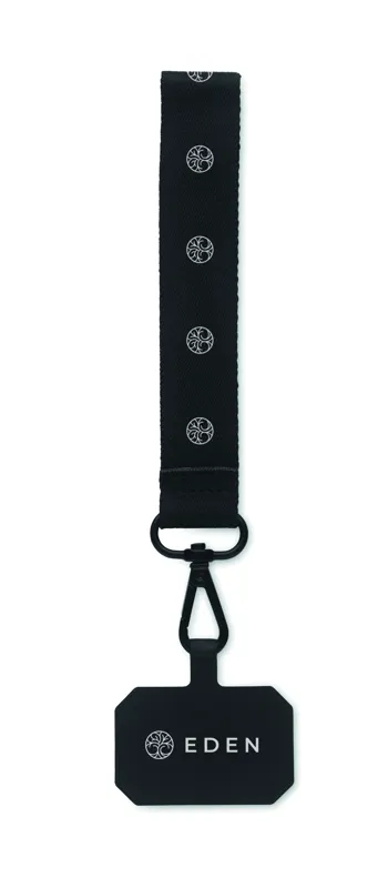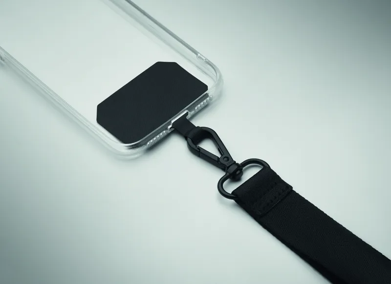 Telefontartó keresztpántos poliészterből, biztonsági csattal. 2,5 cm.