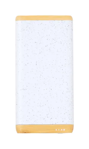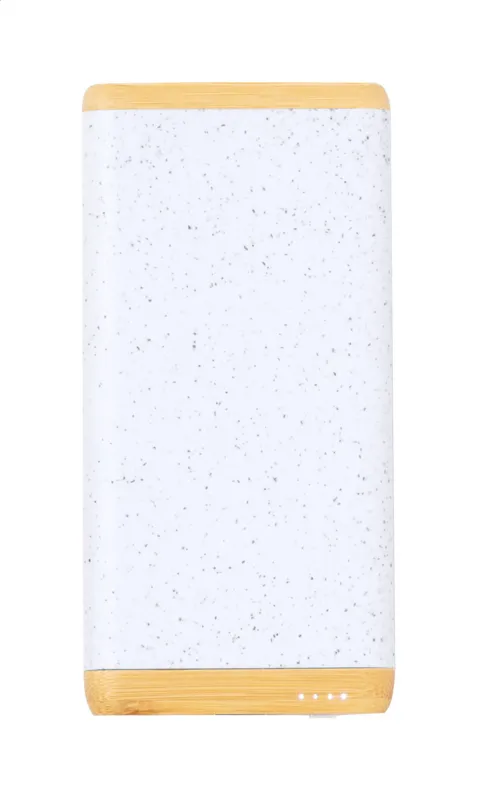 Bambusz és ökológiai búzaszalma műanyag USB power bank 5000 mAh akkumulátorral. 1 USB és 1 USB-C töltőporttal és USB-C bemeneti porttal. USB töltőkábellel szállítjuk.
