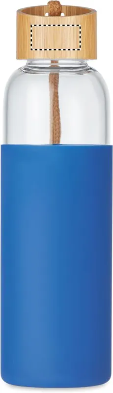 Üvegpalack szilikon tokban, bambusz kupakkal, pamut csuklópánttal. Nem alkalmas szénsavas italokhoz. Szivárgásmentes. Űrtartalom: 500 ml. A bambusz természetes anyag, színében, mintázatában és méretében esetenként eltérő lehet.