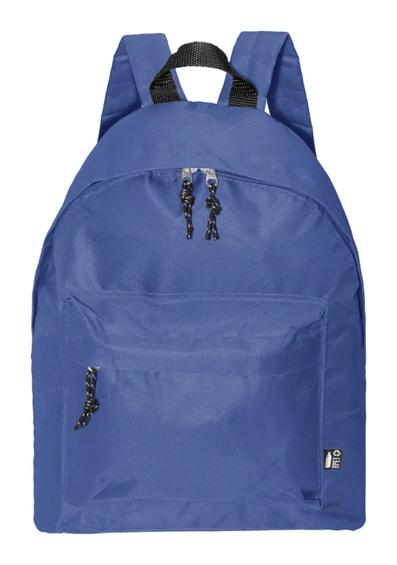 RPET hátizsák cipzáras fő rekesszel, cipzáras első zsebbel, párnázott hát- és vállpánttal. 600D RPET poliészter, megkülönböztető RPET címkével.