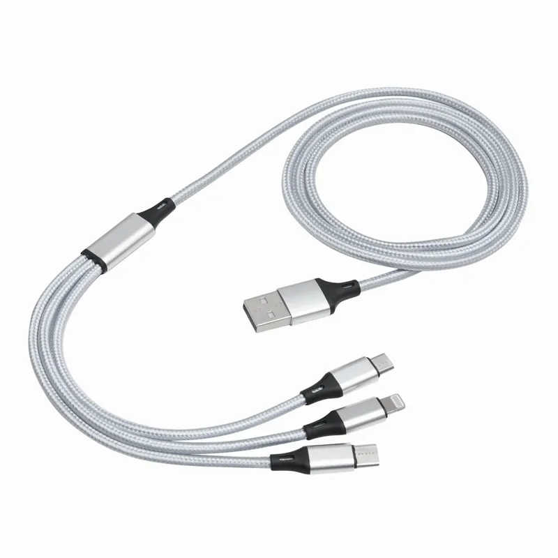 CHARGE DISTANCE töltőkábel: elektronikus eszközök töltéséhez, 3 csatlakozó (USB Type-C, Micro-USB és Lightning®), hossza kb. 120 cm