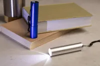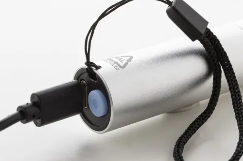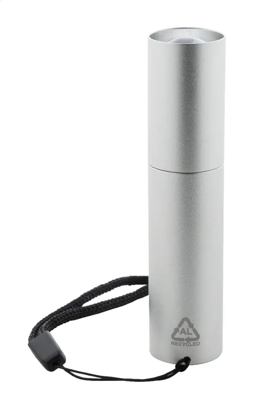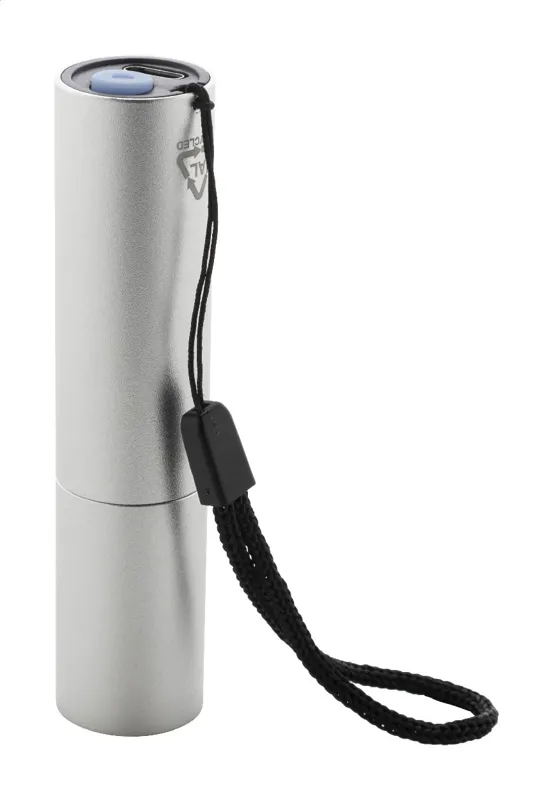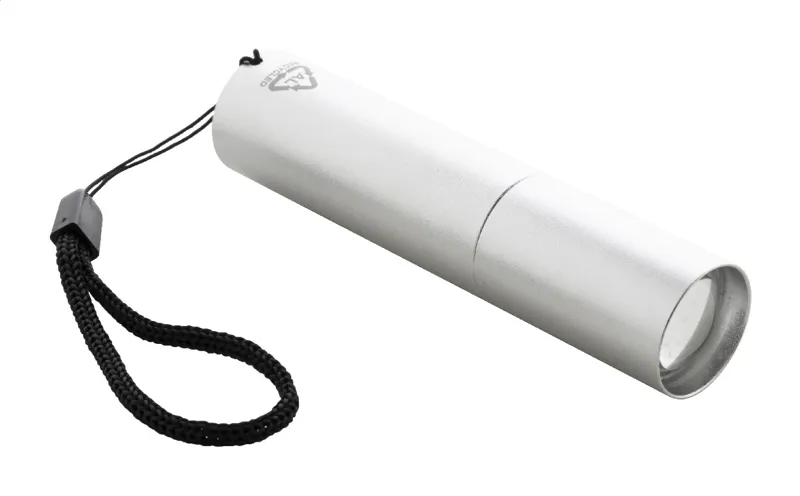 Újrahasznosított alumíniumból készült elemlámpa beépített USB-s akkumulátorral (400 mAh) és hordpánttal. Nagyítható, nagy teljesítményű COB fénnyel és 3 világítási móddal. USB töltőkábellel.