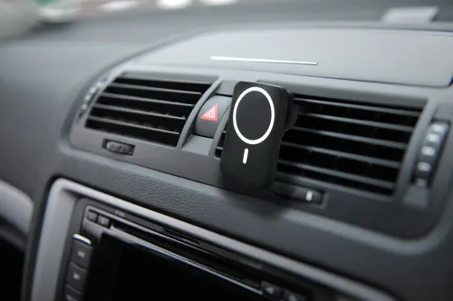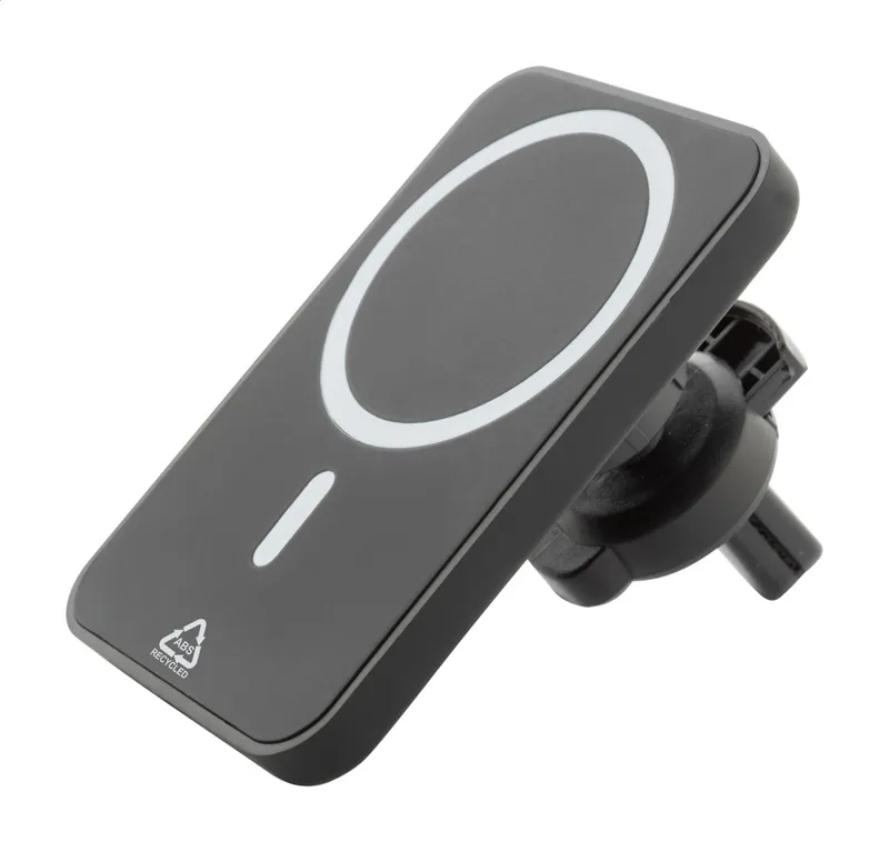 Mágneses autós mobiltartó újrahasznosított ABS borítással, beépített vezeték nélküli gyorstöltővel (15W) és állítható rögzítéssel. Öntapadós fémgyűrűvel, amellyel bármilyen vezeték nélkül tölthető eszközön használhatja a mágneses funkciót. Kompatibilis az iPhone® 12 vagy újabb készülékekkel. USB töltőkábellel.