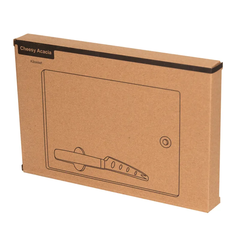 CHEESY ACACIA sajtkés szett : akácfa vágódeszka, sajtkés akácfa nyéllel és rozsdamentes pengével, a kés tökéletesen tárolható a mélyedésben mágnessel, rozsdamentes acéllal megerősített nyílás a felakasztáshoz
