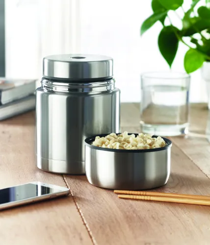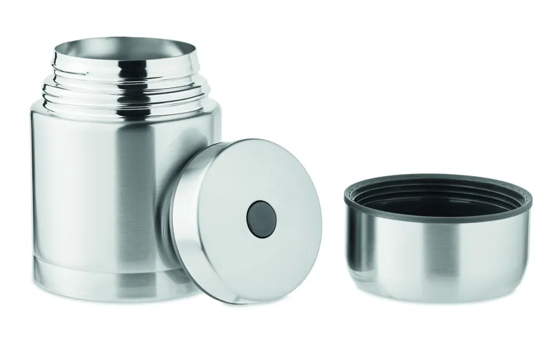 Duplafalú, rozsdamentes acélból készült termoszedény csavaros fedéllel. Űrtartalom: 800 ml.