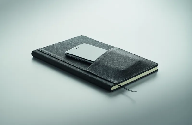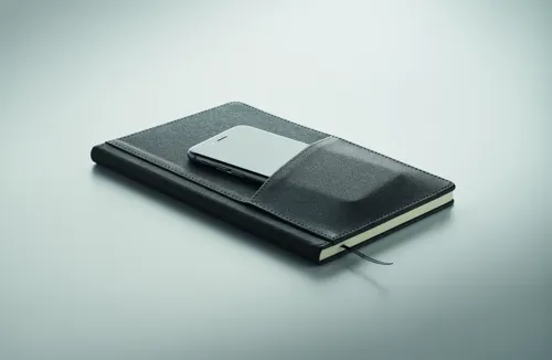 A5 jegyzetfüzet PU keménytáblás borítóval, elülső telefontartó zsebbel és tolltartó hurokkal. Cérnafűzött. 160 vonalas oldal (80 lap) újrahasznosított papírból. Színben illeszkedő könyvjelző szalag. FSC®-certified | FSC MIX CREDIT, P7.1, FSC-C213206