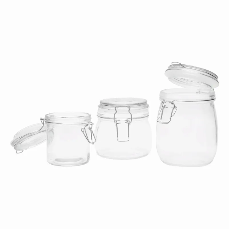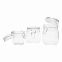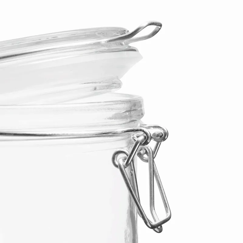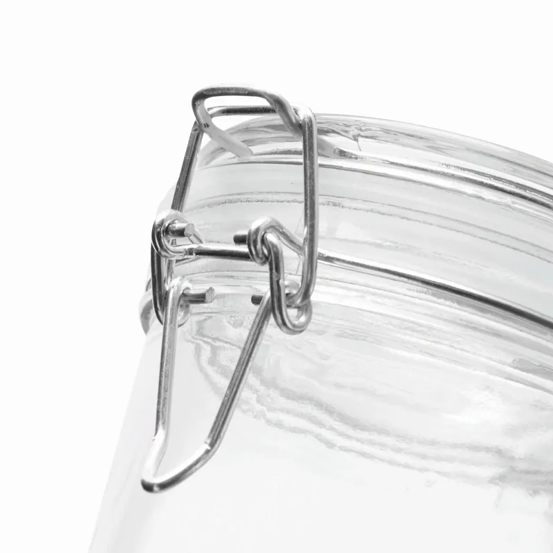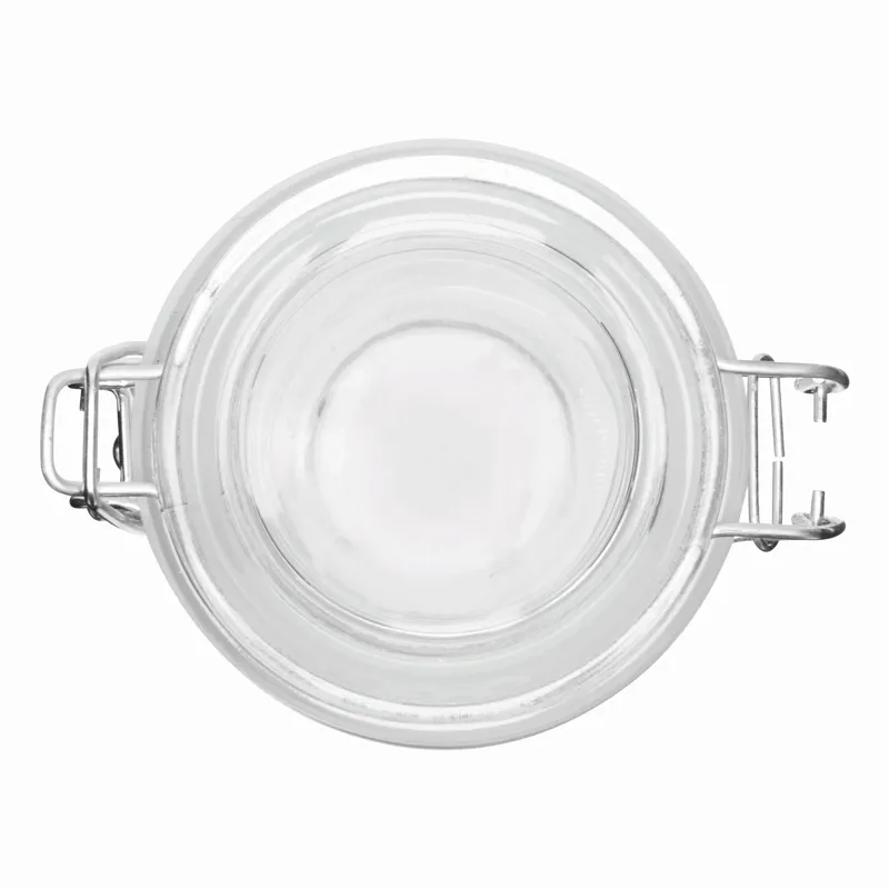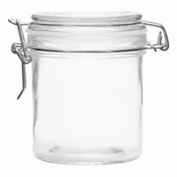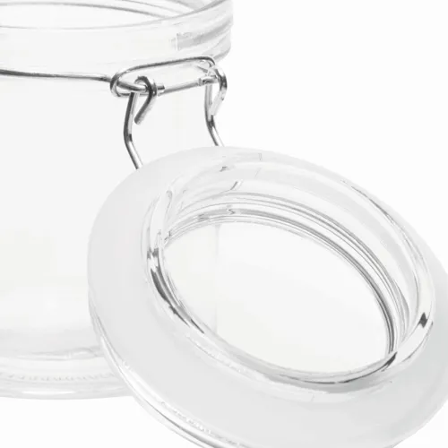 CLICKY S üveg tárolóedény csatos fedéllel és fehér szilikon gyűrűvel: konzervek, befőttek készítéséhez vagy élelmiszerek tárolásához, előre összeszerelt fedél, könnyű nyitás és zárás, számos felhasználási lehetőség, kapacitása kb. 280 ml