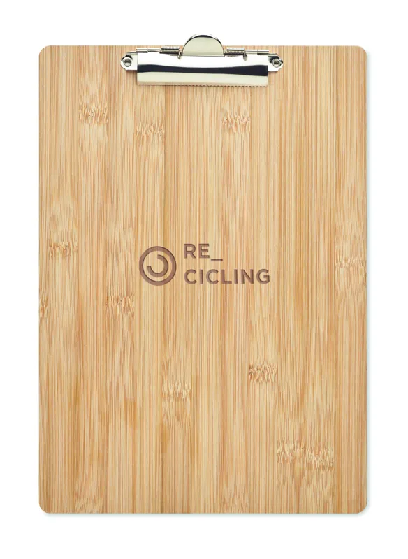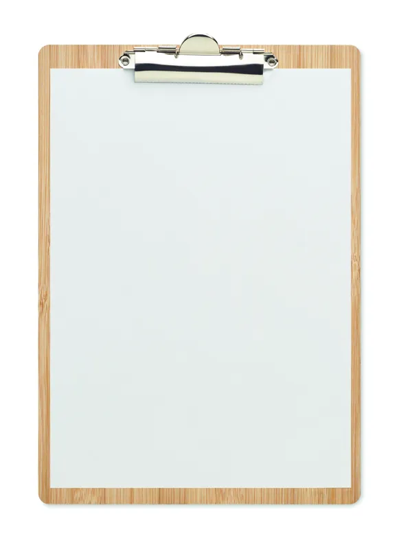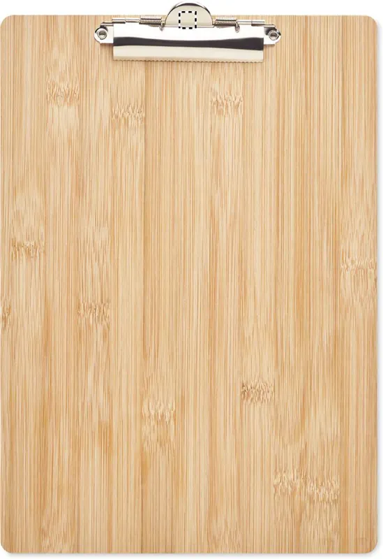 A4 méretű, bambuszból készült csíptetős írótábla. Tartsa rendben folyamatban lévő munkáját, és soha többé ne veszítsen el egy fontos papírt sem ennek a hasznos irodai kelléknek a segítségével. A bambusz alapanyag természetes megjelenést kölcsönöz neki, és sokkal jobb alternatívát nyújt a hagyományos műanyag írótáblákkal szemben. A bambusz természetes anyag, termékenként szín- és méretbeli eltérések jelentkezhetnek, ami befolyásolhatja a dekoráció végső eredményét. FSC®-certified | FSC 100%, N5.7, FSC-C213206