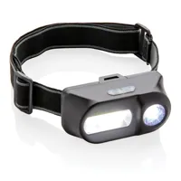 Fejlámpa COB valamint LED lámpákkal. A 180 lumenes COB lámpa tökéletes a közeli területek fényes megvilágítására, a 90 lumenes LED fény pedig a távolabbi, legfeljebb 80 méteres távolság megvilágítására alkalmas. Mindkét lámpa 3 funkcióval rendelkezik: fényes, tompa valamint villogó fény. Állítható 42 cm-es fejpánttal, ABS anyagból. Működési ideje 3 óra. Az elem tartozéka a terméknek.