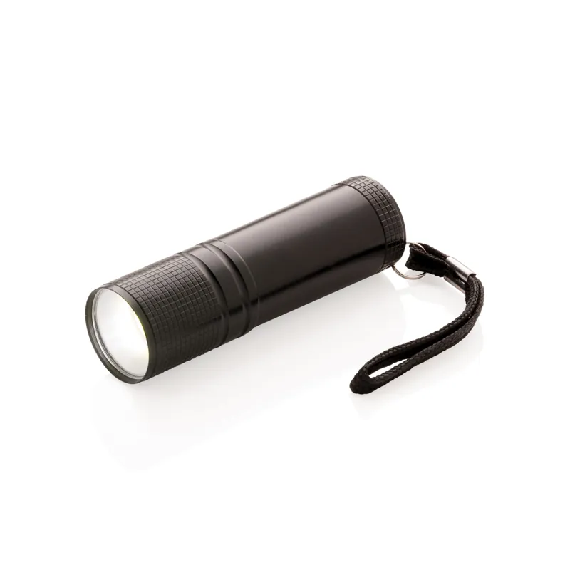 Erős fényű, zsebméretű COB lámpa. A lámpa a LED-nél sokkal erősebb fényű és kevesebb energiát is fogyaszt ezért 30%-kal tovább használható mint egy átlagos lámpa. Erős alumínium testtel és hordszíjjal. 3db AAA elemmel érkezik.