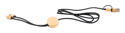 RPET és bambusz USB töltőkábel micro USB, USB-C és lightning csatlakozókkal, USB és USB-C bemenettel. Kábel hossza: 100 cm.