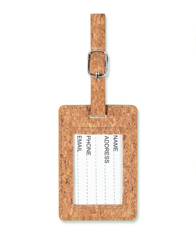 Parafa bőröndcímke. A parafa 100%-ban természetes anyag. Szerkezeti jellege és felületi porozitása miatt az egyes tárgyak végső emblémázási eredménye eltéréseket mutathat.