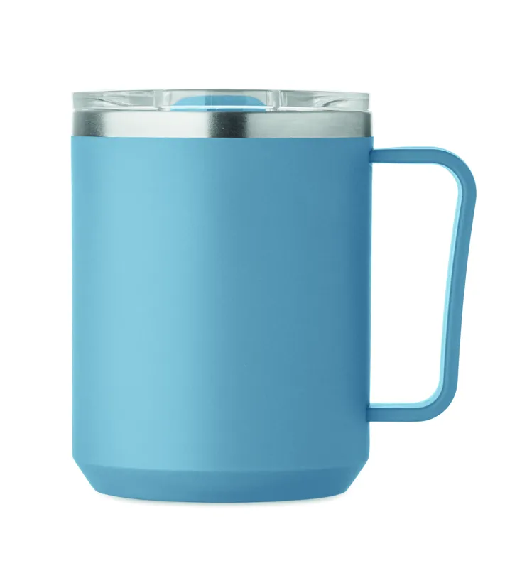 Duplafalú bögre 90 % újrahasznosított rozsdamentes acél és 10 % rozsdamentes acél belsővel, valamint újrahasznosított PP külsővel. Átlátszó AS fedél csúsztatható ivónyílással. Űrtartalom: 400 ml.