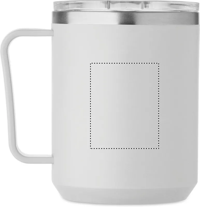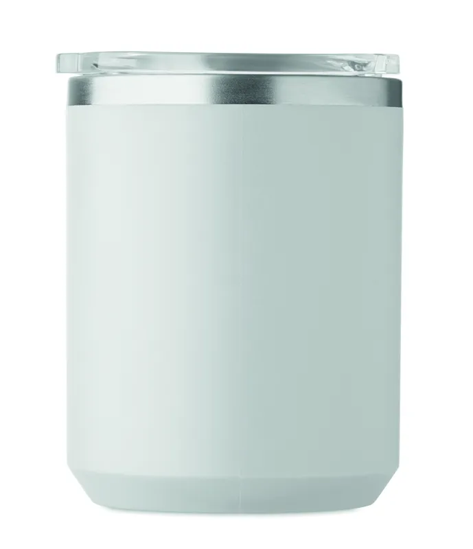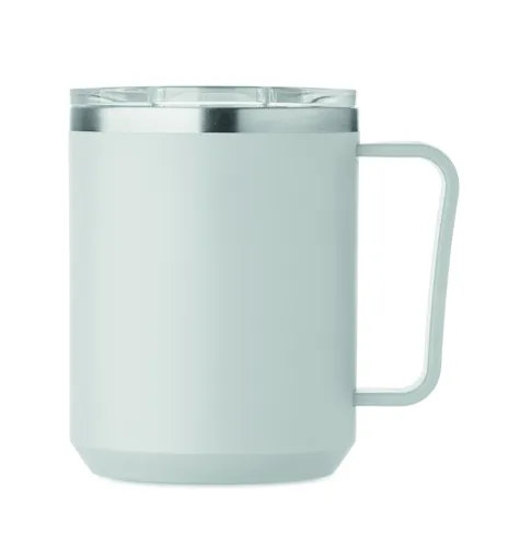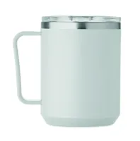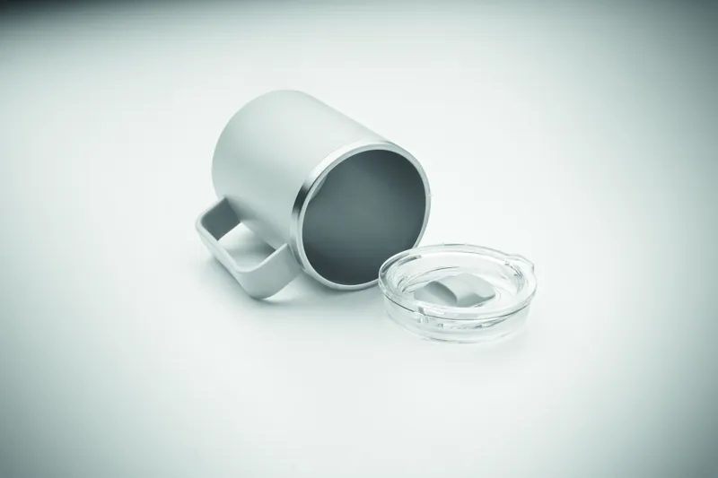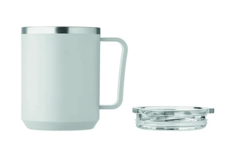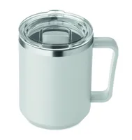 Duplafalú bögre 90 % újrahasznosított rozsdamentes acél és 10 % rozsdamentes acél belsővel, valamint újrahasznosított PP külsővel. Átlátszó AS fedél csúsztatható ivónyílással. Űrtartalom: 400 ml.