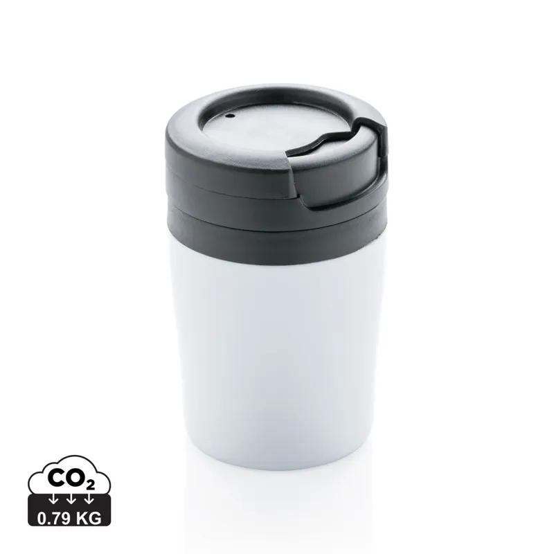 Sokszor a kevesebb több! 8 cm-es magasságával ez a tökéletes duplafalú ivópohár kávéautomatához. PP belsővel valamint könnyen elfordítható, cseppenésmentes tetővel. Tökéletes Ristretto, Espresso és Lungo kávéhoz. Kizárólag kézzel mosható. Űrtartalma: 160ml. Bejegyzett design®