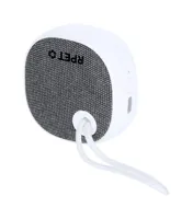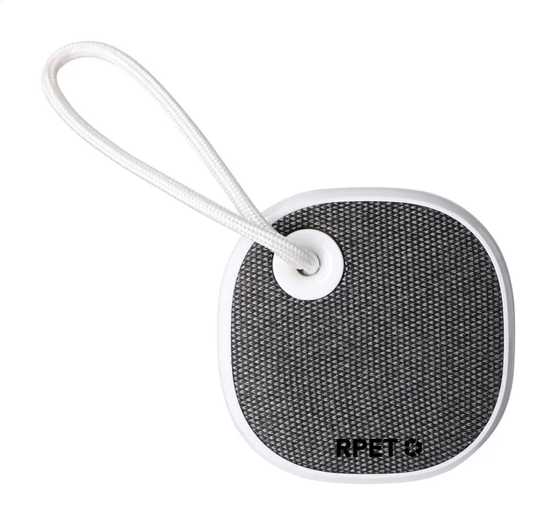 Újrahasznosított ABS műanyag vezeték nélküli hangszóró RPET poliészter oldallal, beépített napelemes töltővel, hordszíjjal és újratölthető akkumulátorral (300 mAh). USB töltőkábellel szállítjuk.
