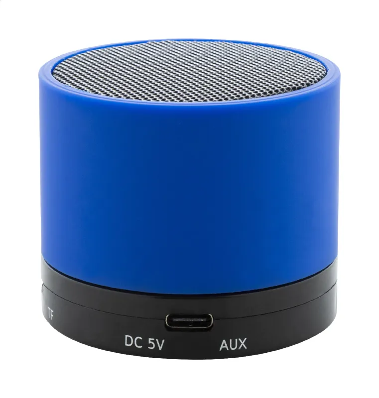 Újrahasznosított ABS műanyag vezeték nélküli hangszóró gumírozott borítással, fém hálóval és újratölthető akkumulátorral (300 mAh). Kihangosító és micro SD MP3 lejátszási funkciókkal. USB töltőkábellel.