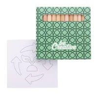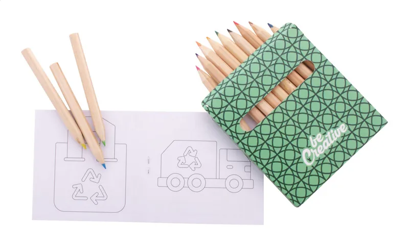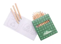Egyediesíthető színező készlet, full-colour nyomtatású papírdobozban. 12 db fából készült színes ceruzával és tematikus kifestő könyvvel. Minimális rendelési mennyiség: 100 db.